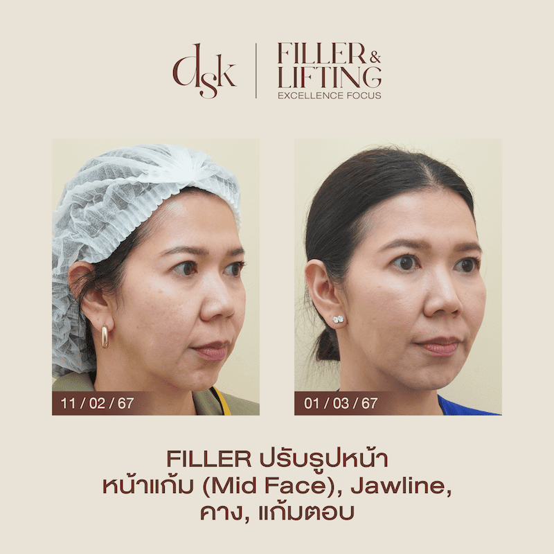 - ร่องแก้ม: ลดความลึกของร่องแก้ม ทำให้ใบหน้าดูเรียบเนียนขึ้น
