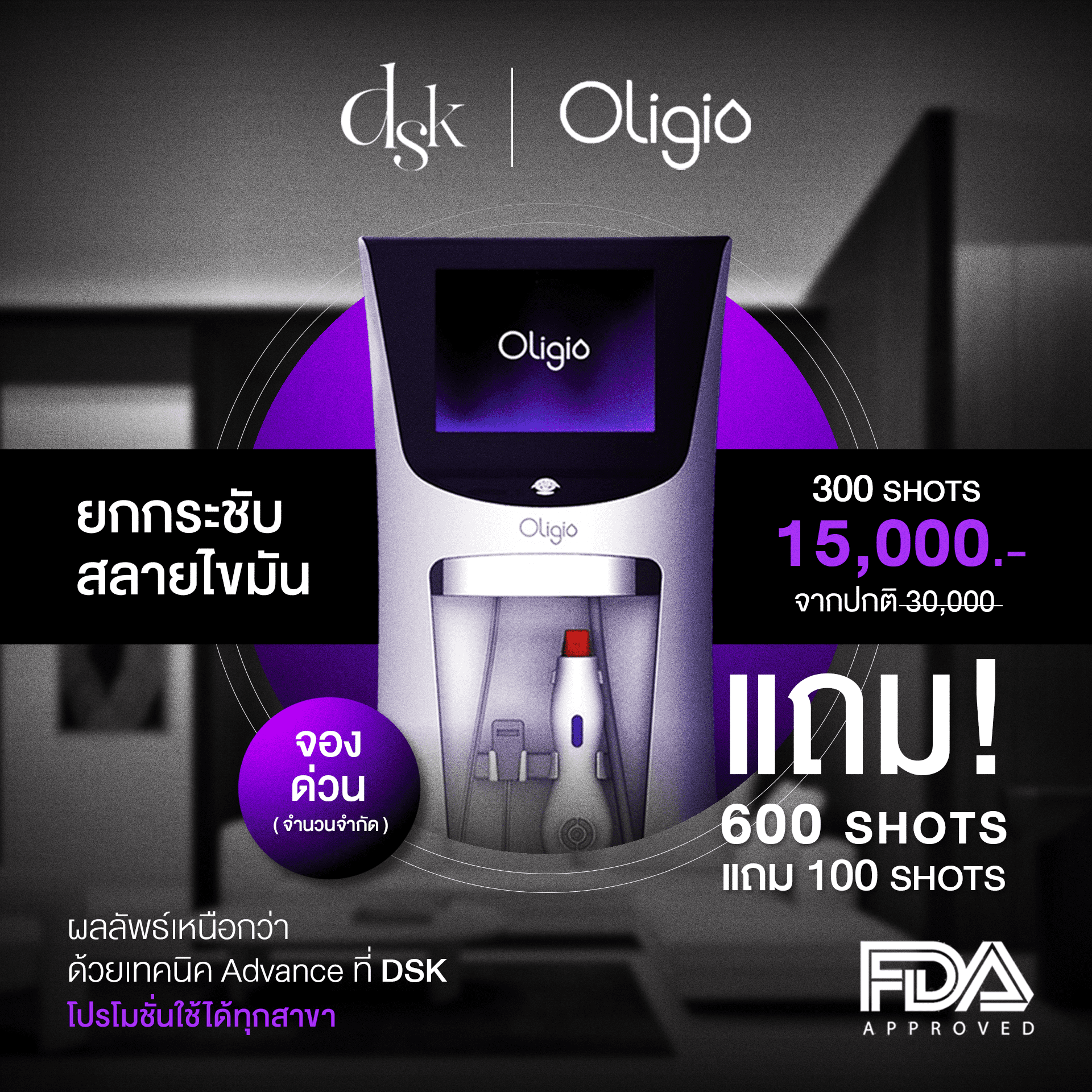| – Oligio เป็นนวัตกรรมยกกระชับผิวและสลายไขมันด้วยคลื่นวิทยุชนิด Monopolar RF ช่วยทั้งยกกระชับผิว ลดริ้วรอย กระชับรูขุมขน กระตุ้นการสร้างคอลลาเจนใต้ชั้นผิว สลายไขมัน ผิวหน้าเรียวลงอย่างเป็นธรรมชาติ – Oligio ต่างจากหัตถการเสริมความงามอื่นตรงที่ใช้เวลาทำน้อย ไม่ต้องเตรียมตัวมาก ไม่มีการทายาชา หลังทำสามารถทาครีมบำรุง และใช้ชีวิตได้ตามปกติ สามารถทำร่วมกับหัตถการอื่นได้ – ที่ DSK Clinic มีนวัตกรรม Oligio ดำเนินการโดยแพทย์ผิวหนังเลเซอร์เฉพาะทางใช้การเทคนิคการรักษาเฉพาะบุคคล ทำให้สามารถแก้ปัญหาได้อย่างตรงจุด – นอกจาก Oligio ที่ DSK เป็นคลินิกที่รวมเครื่องยกกระชับระดับ USFDA ไว้ครบทั้ง Ulthera, Thermage, Potenza รวมถึงหัตถการฉีดอย่าง Sculptra, Radiesse และ Filler ทำให้ทีมแพทย์มีเครื่องมือครบ จึงสามารถเลือกสิ่งที่เหมาะสมกับคนไข้ได้จริง |