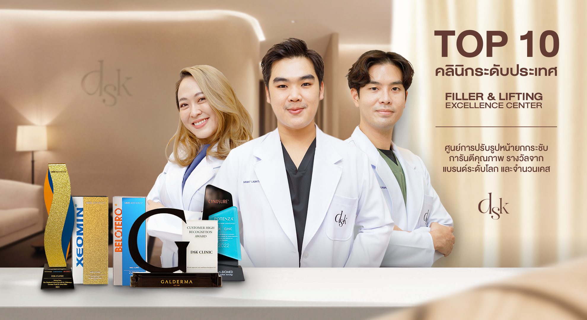 - ควรเลือกคลินิกที่มีเครื่องมือครบ มีแพทย์ในการดูแล ซึ่งที่ DSK มีทั้ง โปรแกรม ThermageFLX, โปรแกรม UltheraSPT, โปรแกรม Sculptra, โปรแกรม Radiesse Filler และมีแพทย์ที่เข้าใจ และเน้นหลักการการวางแผนเฉพาะบุคคล จึงสามารถเลือกเครื่องมือที่เหมาะสมให้กับคนไข้ได้อย่างตรงไปตรงมา
